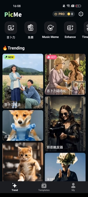 PicMe软件是一款超有趣的AI图像编辑软件。无论你期望获得何种效果,都能借助AI来生成。只需导入图片或视频,就能迅速制作出图片效果。软件内有多种素材可供使用,而且大部分编辑工具都能免费使用。