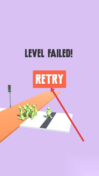 3、要是显示“LEVEL - FAILED”,点击【RETRY】再次挑战,对策略加以调整,务必保证人群安全通过,以推动游戏进程。