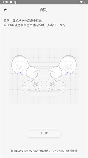 4、当LED的蓝色与红色交替闪烁时,我们点击下一步。