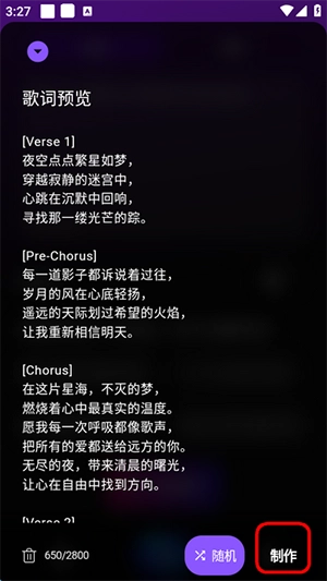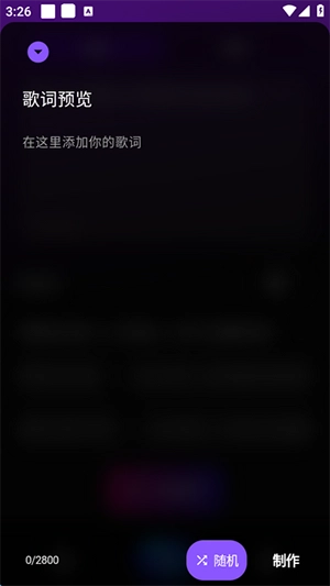 2、需要提供歌词,也可以点随机,软件会自动帮你生成。