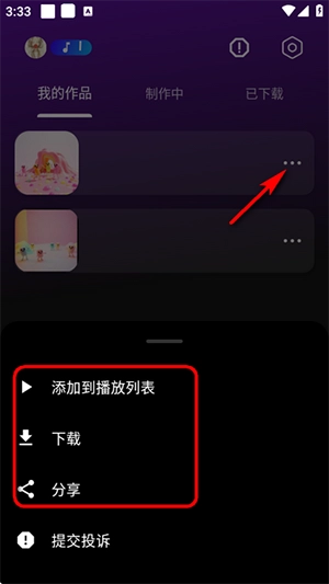 5、生成好后可以点三个点添加到播放列表,下载或者分享。