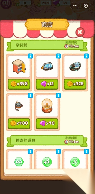 7、活动结束时,商店的价格如图六所示(可依据自身的钱数与钻石数来决定)