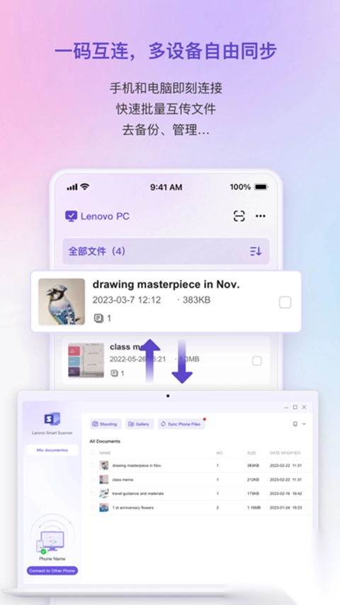 只需扫描二维码,就能迅速连接多个设备,并实现文档的同步传输。