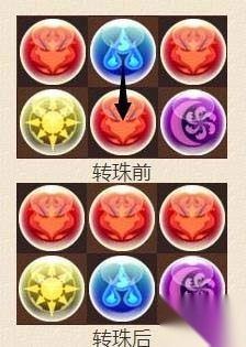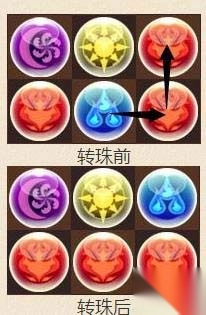 把右上方的水珠往下移动一格,三颗火珠便会并排消除。这种方法是极为常见的排列顺序,熟练掌握后能增加不少combo呢~