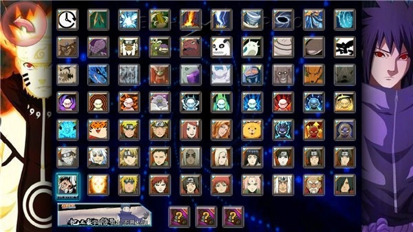 4、选择完人物之后就要选择召唤技能了,在这里你可以选择尾兽技能、卷轴技能、或者角色技能,小编选择的是宇智波带土忍界大战;
