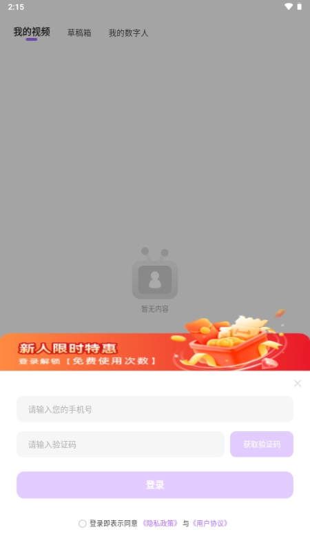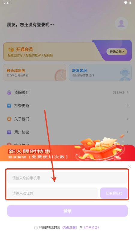 4、然后,输入您的手机号码以接收并输入验证码完成登录。