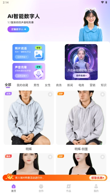 AI智能数字人APP,是依托先进人工智能技术打造的数字人生成及应用平台,主要面向创作者、企业主以及直播带货从业者。用户只需上传一张照片,或者录制一段简短的视频,就能迅速生成个人专属的数字人形象。同时,平台还提供丰富多样风格的数字人模板,充分满足不同性别、年龄段以及各种场景的使用需求。