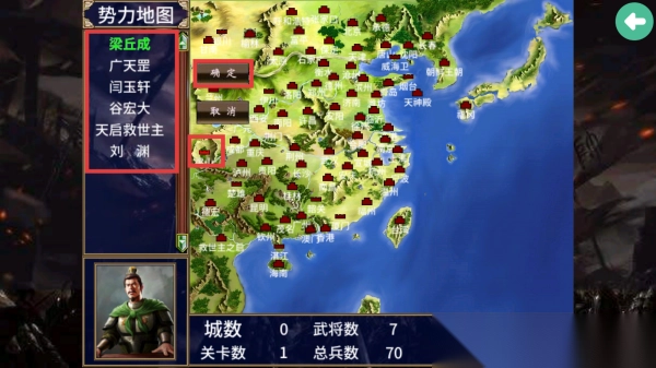 3、轻点人物名,便能查看与之对应的城关势力,随后点击【确定】按钮,即可开启治理操作。