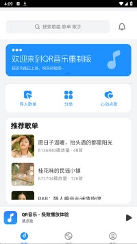 1. 先下载并安装QR音乐app,安装完成后打开该应用,随即进入其主页。