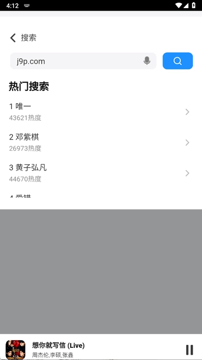 2. 轻点搜索框,然后在框内输入歌手名称或歌曲名称。