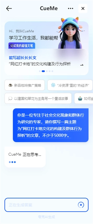 CueMe 可生成长达2万字的长文本,在深度内容创作方面优势显著。它以大纲为起点,逐步生成正文,帮助用户攻克复杂的写作难题。