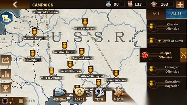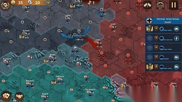 当然,除了关卡模式,将军的荣耀3国际服最新版中还有着全新的集团军模式可供玩家们游玩。在此模式中,不同的势力的集团军在地图上互相攻占,不过地图上的兵种被简化为了棋子,少了具体画面的表现,不过可以更加注重全局策略。此外,游戏内有一些简单的养成的模式,比如强化兵种、购买将领等。购买后的将领可以放置到兵种中,用来增加作战单位的战斗力。这和E社之前游戏的氪金模式类似,但不同的是将领获得之后则不需要再培养了,这对于玩家们来说还是一个不错的消息。总的来说,将军的荣耀3国际版官方版的可玩性还是非常高的,如果你想体验最真实、最热血、最刺激的二战模拟战场,那就赶紧来下载试试吧!