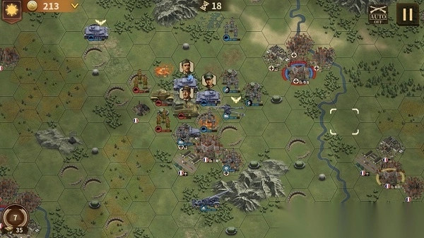 《将军的荣耀3》国际服是一款以二战为背景的回合制策略战棋手游。其美术风格硬派写实,与战争题材相得益彰。在游戏里,玩家要操控各类兵种,于一张庞大地图上排兵布阵,时而推进,时而迂回,占领军事要地,集结优势兵力歼灭敌军,从而赢得战役胜利。可别觉得这轻而易举,《将军的荣耀3》国际官方版的关卡地图极为庞大,涵盖山地、海洋、城市等多样地形地势。大地图被划分成众多六边形格子,兵种移动与推进极为自由,所有战斗皆在这一张地图上呈现。兵种方面,除步兵、坦克等陆地兵种外,战斗中还有军舰、轰炸机、空降兵等特殊兵种,战斗策略丰富立体,能让玩家获得极佳的代入感!