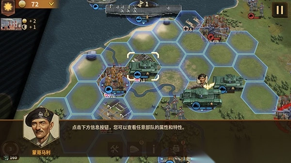 3、招募部队、空袭、空降、派遣特种部队以及将领、雇佣援军,你的每个决策都将决定战役的走向。