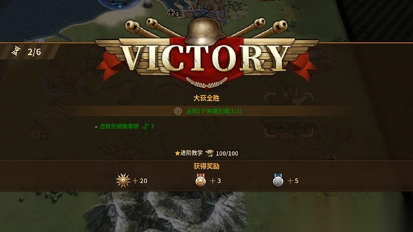 2、达成战役中的任务目标:夺取目标区域、援救友军、突出包围、防守阵地、大规模歼灭敌军等。