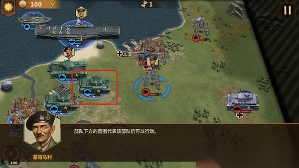 2、己方部队下方的蓝圈代表该部队仍可以行动。