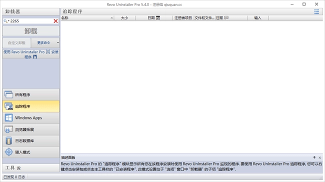 卸载程序模块是 Revo Uninstaller Pro 的主要功能,用于程序无法正常卸载或怀疑程序尚未完全卸载的情况。