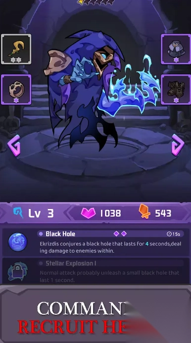 2. 历经战斗来获取资源,进而提升英雄的属性与技能,同时解锁更高级别的装备以及被动加成效果。