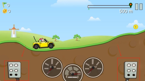 2、左侧控制刹车与方向调整,右侧用于加速和跳跃操作,界面清晰便于快速上手掌握整体流程。