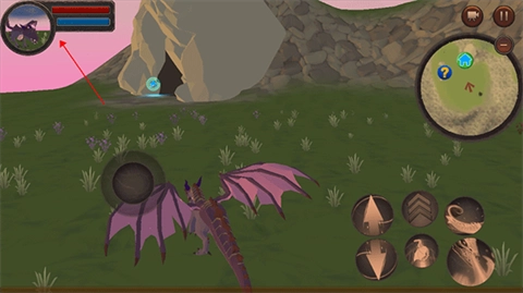 5、龙每进行一次行动,都要消耗精力。在画面的左上角,能够看到能量相关信息。其中,红色条代表健康状况,蓝色条则代表能量。当龙休息一阵子后,能量便会自行恢复。