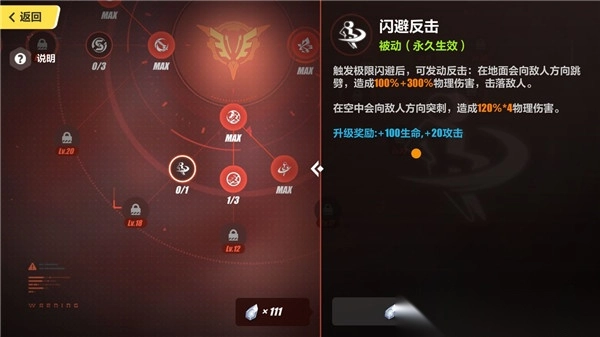 1、点出“闪避反击”能让角色的机动性进一步提高,且多一次伤害
