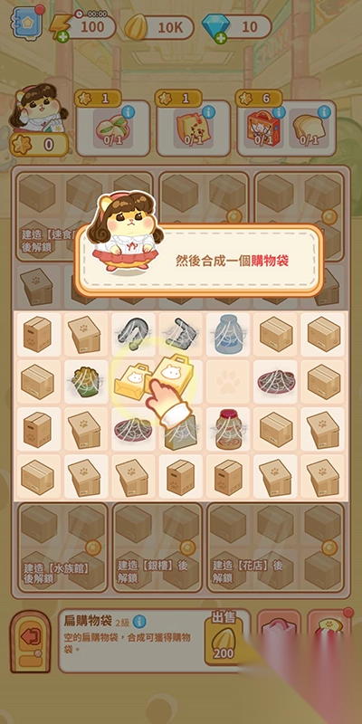 1. 在超市的研发中心,鼠鼠要通过合成游戏框内的元素来完成订单。