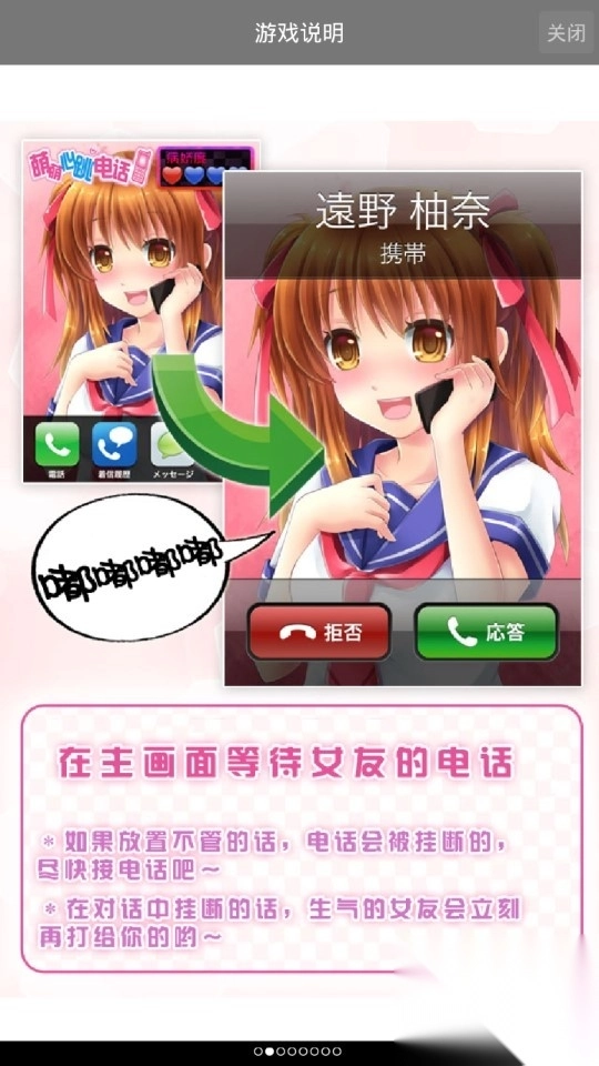 《心跳电话:远野柚奈萌えきゅんコール?遠野柚奈》是一款养成类游戏。你敢不接病娇女友的电话吗?萌萌的心跳电话能为你与心仪的二次元女性建立连线。玩家借助这款软件,能够和喜爱的角色模拟电话通信。随着通话次数增多,好感度也会随之提升!当好感度达到一定程度,电话里的内容会变得更加亲密哦!