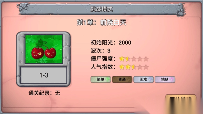 游戏包含冒险模式和挑战模式,玩家需要合理布置植物,利用它们的技能和特点来抵御僵尸的进攻。完成关卡可以获得奖励,后续关卡难度逐渐提升。