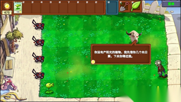 4、多亏牛头帮我们弄来了几个向日葵,有了它们就能持续产出阳光。游戏后续的玩法相当简单,希望牛头能继续助力我们顺利通关。