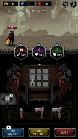 4、消灭所有敌人后就会进入休息阶段,点击重掷可以获得新的装备。