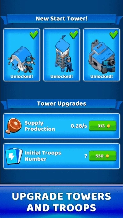 征服塔战争与接管游戏,是一种融合了塔防战斗元素的趣味挑战玩法。在此玩法中,你需要分批次占领各个位置,并依据自身兵力展开挑战。合理规划出兵位置,全力抵御敌人的进攻。这一玩法相当有趣,快来一同体验吧!