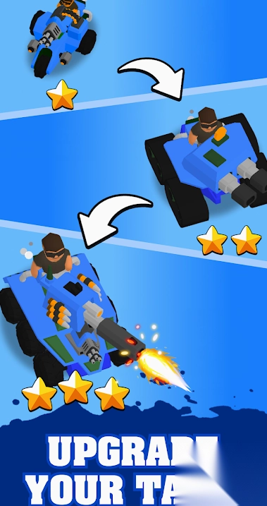 2、通过战斗获取资源,升级坦克和装备,提升军队的战斗力。