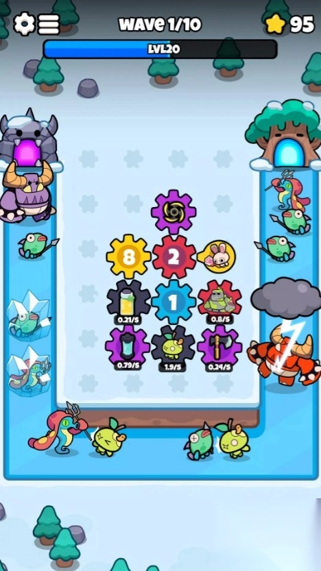 1采用清新可爱的卡通风格画面,玩家需通过合理组合齿轮,来抵御敌人的攻击,兼具趣味性与挑战性。