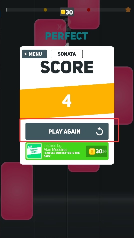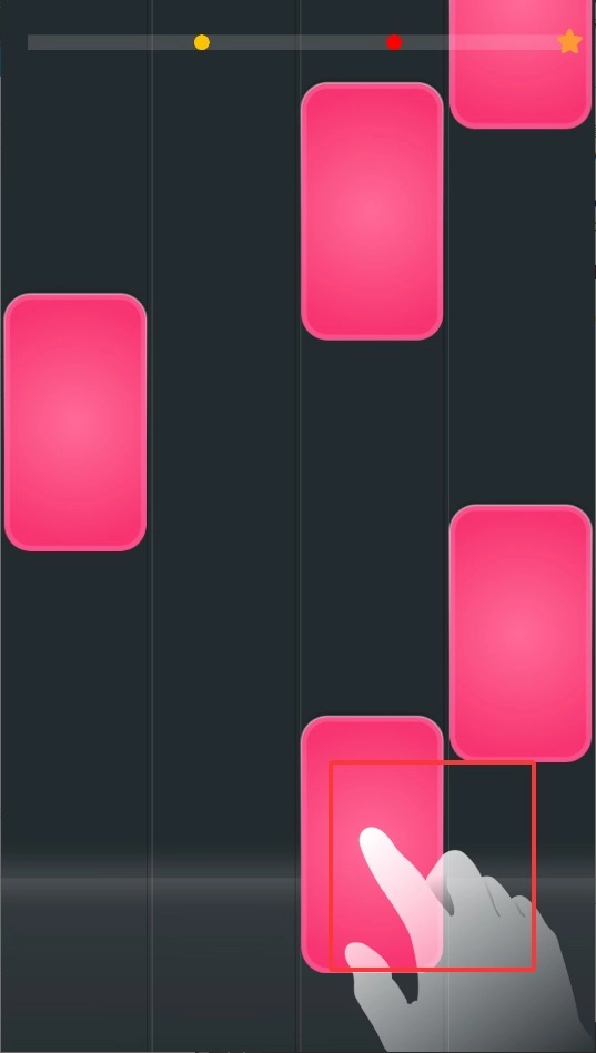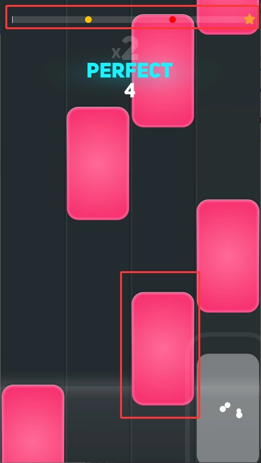 2、跟音乐节奏准确点击每个红色方块,保持连击状态直至上方能量条充满即可通关。