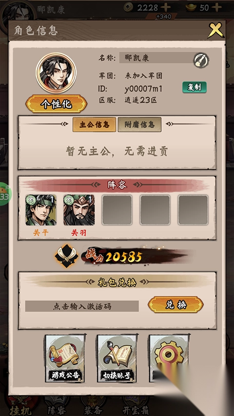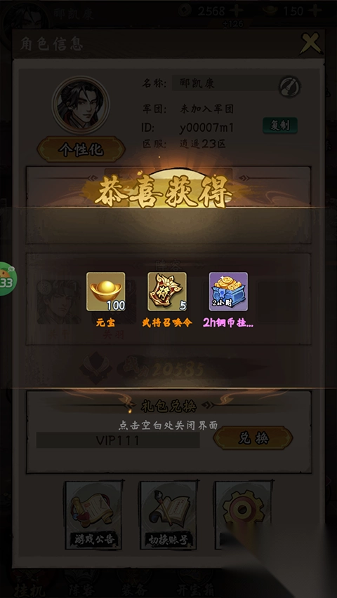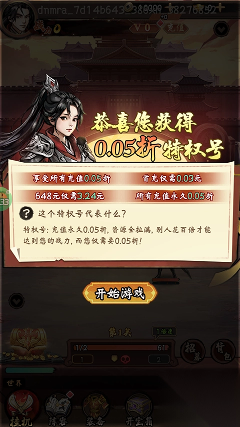 1、进入三国将魂折扣版游戏就可以获得官方赠送的特权号;