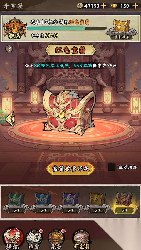 2、然后我们可以通过游戏内的招募或者开宝箱来获得武将;