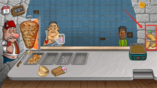 3、接着点击土豆等待进度条全部为绿色后将他们放入到炸锅中;