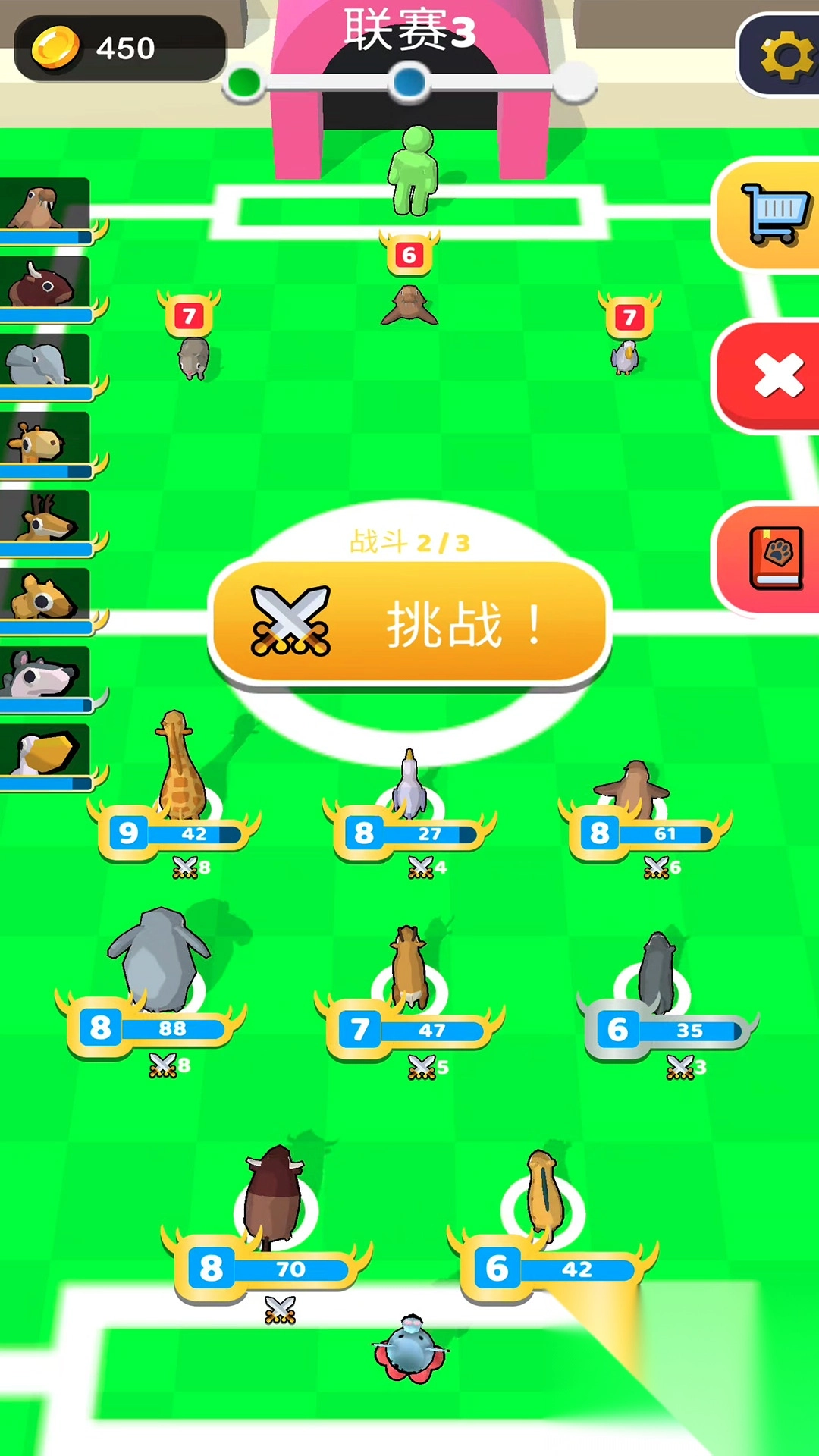 3、点击挑战参加联赛,宠物自动对战,赢了拿金币、新宠物,解锁更多场景和玩法。