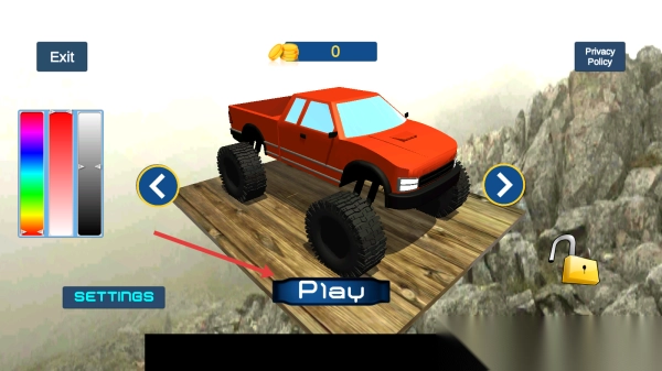 1. 选择红色卡车,点击【Play】,花费0金币,进入越野场景。