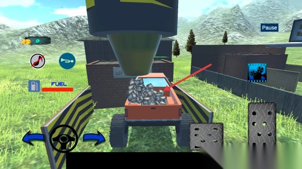 3、抵达建筑区域后,将卡车停靠在指定地点,装载“钞票”货物,完成运输任务,从而赚取金币以解锁新的卡车。