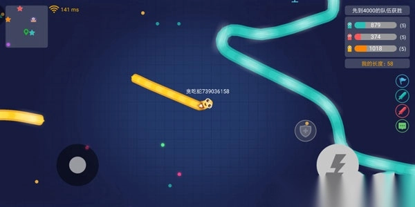 在熟悉了基本玩法后,就可以进行团战模式的玩法了。在团战模式中,小蛇的头部撞到同队(同色)的队友不会死亡。
