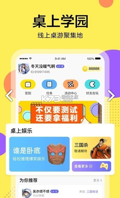 桌上学园app官方版,一款超棒的多人线上桌游软件!在这里,你能和其他用户一同畅享桌游乐趣。软件内汇聚海量多人小游戏,三国杀、狼人杀、谁是卧底等应有尽有,玩法新颖。平台人气超高,一键匹配,趣味无穷。它专为桌游打造,精选海量桌游内容,助你在各类聚会轻松开启桌游。不仅能创建私人房间与好友同玩,还能和陌生人线上对战,无需任何道具,轻松开启桌游之旅。别再犹豫,快来下载体验吧!