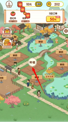 3、进入游戏后点击空闲的田地种植各种作物