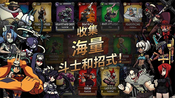 《Skullgirls骷髅女孩官方版》是一款超刺激好玩的动作冒险格斗游戏。《Skullgirls骷髅女孩官方版手机》中,玩家能收集超多精美帅气的角色,尽情体验热血刺激的战斗玩法,感受爽快的打击感。游戏画风细腻精美,技能特效炫酷华丽,玩法刺激过瘾,可玩性极高。感兴趣的小伙伴,赶紧来下载试试吧!