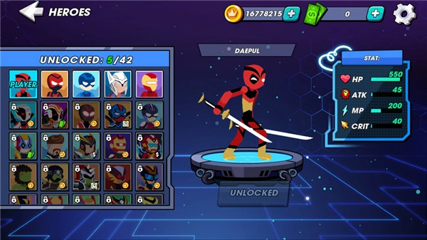 1、海量战斗火柴人等待你的挑战,每一个火柴人的战斗力皆不相同。