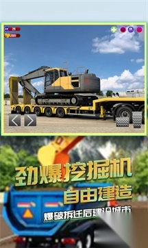 3、驾驶挖掘机,把石料装载到黄色卡车上,完成运输工作,从而赚取金币,解锁更多内容。