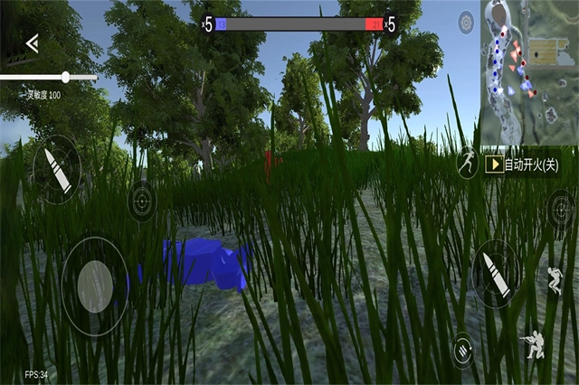 3、进入游戏后,左侧可通过控制摇杆来实现角色行走,右侧则设有射击以及跳、蹲等基础操作按钮。