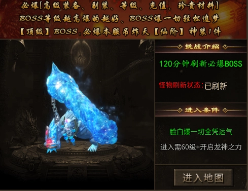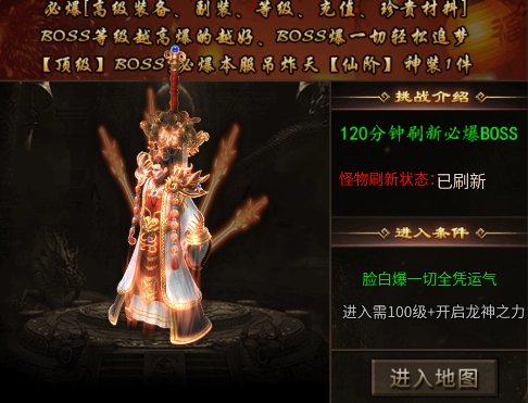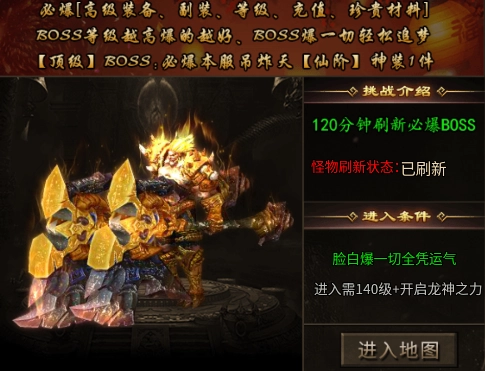 4. 免费赞助福利:击杀怪物即可领取3档免费赞助,回收元宝能享受1.5倍收益,同时还可激活冰冻怪物与鞭尸怪物的特权。