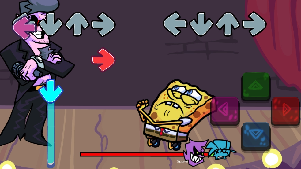 周五夜放克章鱼哥萨日朗(Friday Night Funkin)是一款超有趣的休闲益智音乐游戏。它是基于热门游戏周五夜放克二次创作而来的全新版本。该版本并未改变游戏的核心玩法,而是增添了《海绵宝宝》里的一些角色,使得游戏无论是视觉体验还是实际游玩感受,都变得更加有意思。