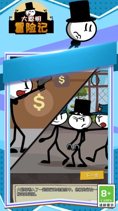 《大聪明冒险记》以简约的火柴人形象开启一系列脑洞大开的密室逃脱挑战。游戏精心打造了形态各异的谜题房间,有些房间需要机关密码,有些则要重组破碎的道具,每一关都带来别具一格的解谜思路。流畅的线条动画与巧妙的物理谜题相搭配,使得逃脱过程不仅考验逻辑思维,还充满了意外惊喜。